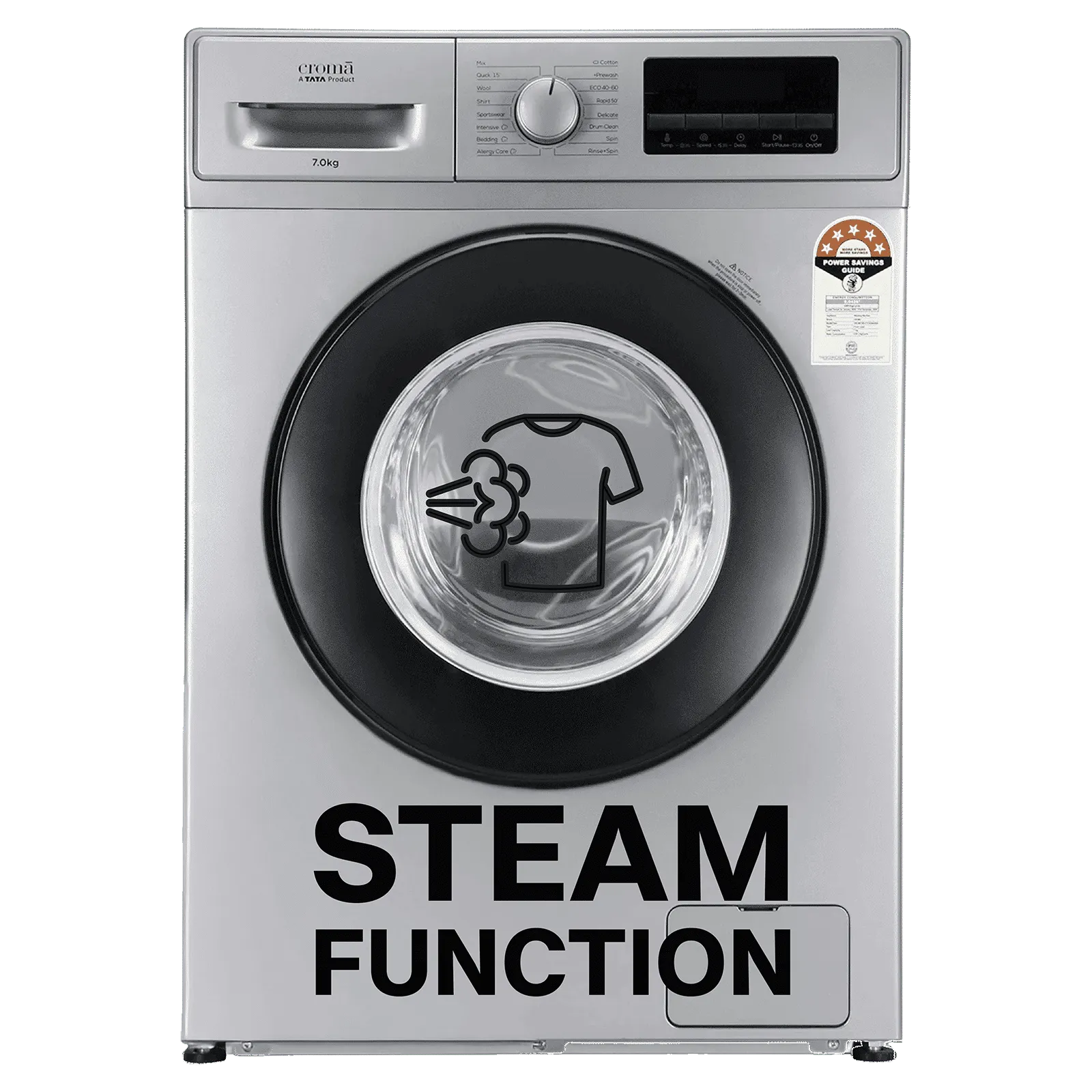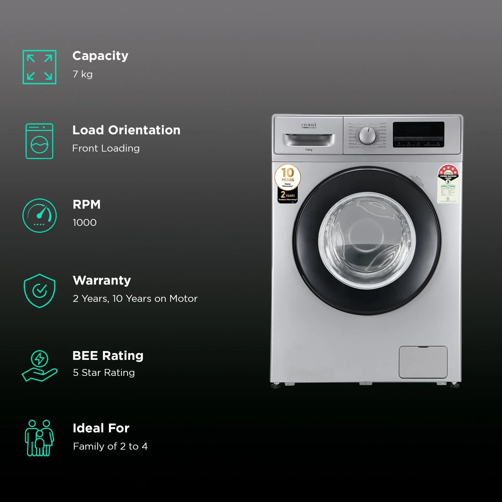 Croma 7 kg 5 Star Inverter Fully Automatic Front Load Washing Machine (2025 Model, Built in heater, Silver Grey)